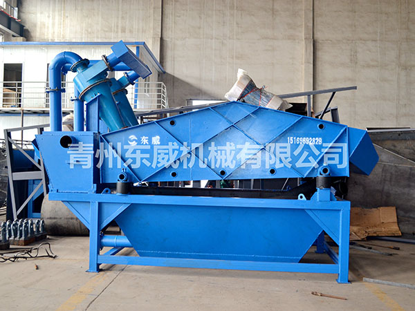 目前現(xiàn)有的洗沙生產(chǎn)線上,絕大部分采用濕法生產(chǎn)工藝,不論采用何種形式的洗砂機(jī),其大的缺點(diǎn)就是細(xì)沙流失嚴(yán)重,嚴(yán)重影響沙子的級配,造成級配不合理,細(xì)度模數(shù)偏粗,大大降低了機(jī)制砂的產(chǎn)品質(zhì)量。過多的細(xì)沙排放,還會造成環(huán)境污染。為解決上述問題,青州東威機(jī)械技術(shù)部門潛心研發(fā)了細(xì)沙回收機(jī)(細(xì)砂回收機(jī)),該細(xì)沙回收系統(tǒng)吸收國外先進(jìn)技術(shù),結(jié)合本土砂粉實(shí)際情況而設(shè)計(jì)的細(xì)沙回收設(shè)備。細(xì)沙回收機(jī)廣泛應(yīng)用于洗沙場、砂石骨料加工系統(tǒng)、玻璃原材料加工系統(tǒng)、人工制沙生產(chǎn)線、選煤廠粗煤泥的回收以及環(huán)保工程(泥漿凈化)等,可有效解決細(xì)沙回收問題。