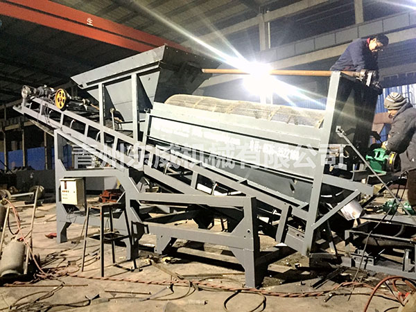 裝載機(jī)將砂石混合料鏟入料倉,物料經(jīng)料倉流入滾筒篩內(nèi)進(jìn)行篩分,篩分后的沙子由輸送機(jī)輸送至料堆,鵝卵石通過滾筒篩溜到篩沙機(jī)尾部,一次性完成篩沙作業(yè)。